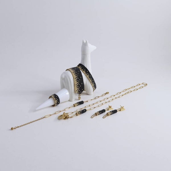 Handgeweven ring met Japanse glasparels beschikbaar in 5 ringmaten.