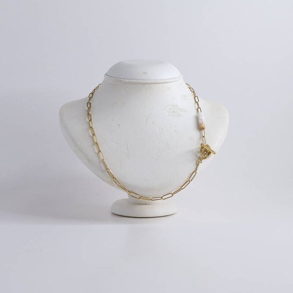 Materiaal: RVS halssnoer met bedel van Japanse glasparels